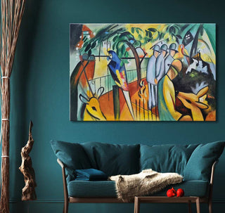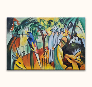 Handgeschilderd schilderij Diergaarde van August Macke. Olieverfschilderij van hoge kwaliteit waarbij vibrante kleuren door middel van moderne schilderkunst zijn afgebeeld.