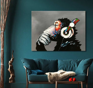 Handgeschilderd olieverfschilderij ‘Monkey’ van straatartiest Banksy. Olieverfschilderij van hoge kwaliteit waarbij een aap door middel van impressionistische schilderkunst is afgebeeld.