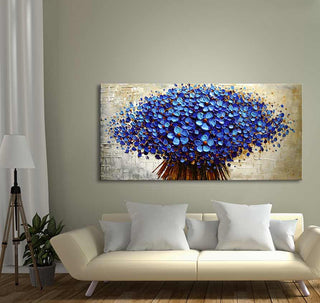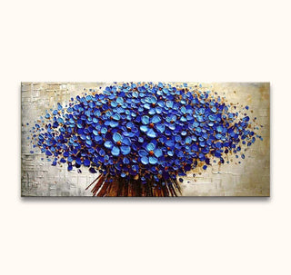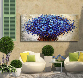 Handgeschilderd schilderij Bolderikbloemen. Olieverfschilderij van hoge kwaliteit waarbij een bos bolderikbloemen in bloei door middel van moderne paletmes schilderkunst is afgebeeld.