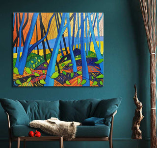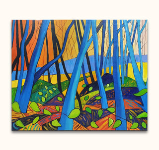 Handgeschilderd schilderij Winter Trees - David Hockney signature. Olieverfschilderij van hoge kwaliteit waarbij een woud door middel van moderne schilderkunst is afgebeeld.