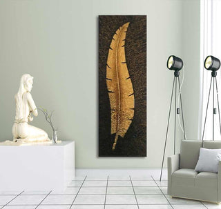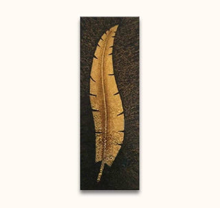 Handgeschilderd schilderij Goudblad. Olieverfschilderij van hoge kwaliteit waarbij een gouden bladtextuur op een zwart-gouden achtergrond door middel van moderne paletmes schilderkunst is afgebeeld.