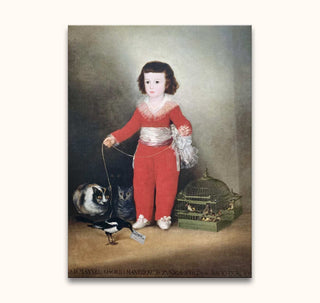 Handgeschilderd olieverfschilderij Manuel Osorio Manrique de Zuniga van Goya. Olieverfschilderij van hoge kwaliteit waarbij een meisje met twee katten en een eend door middel van klassieke schilderkunst is afgebeeld.