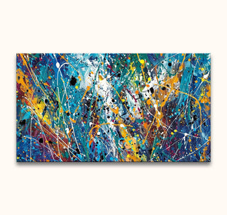 Handgeschilderd schilderij Gracelands - Jackson Pollock signature. Olieverfschilderij van hoge kwaliteit waarbij vibrante kleuren door middel van moderne schilderkunst zijn afgebeeld.