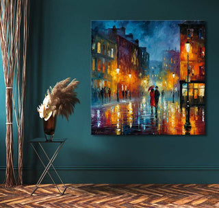Origineel handgeschilderd schilderij 'Love from London' in de stijl van Leonid Afremov, door Grootmeesters. Modern olieverfschilderij van hoge kwaliteit waarbij de unieke schoonheid van London door middel van impressionistische schilderkunst is afgebeeld. Dit is een origineel werk geïnspireerd door de stijl van Leonid Afremov, geen reproductie.
