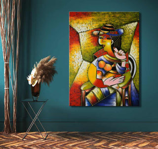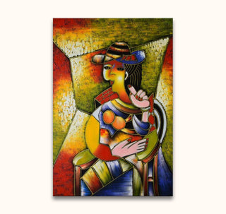 Handgeschilderd schilderij Anabella - Pablo Picasso signature. Modern abstract olieverfschilderij van hoge kwaliteit waarbij Annabella, een vriendin van Picasso, door middel van kubistische schilderkunst is afgebeeld.