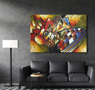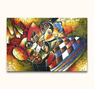 Handgeschilderd schilderij Desiree - Pablo Picasso signature. Modern abstract olieverfschilderij van hoge kwaliteit waarbij Desiree, een vriendin van Picasso, door middel van kubistische schilderkunst is afgebeeld.