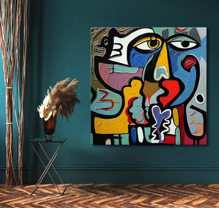 Handgeschilderd schilderij Serafina Natalia - Pablo Picasso signature. Modern abstract olieverfschilderij van hoge kwaliteit waarbij Serafina, een vriendin van Picasso, door middel van kubistische schilderkunst is afgebeeld.