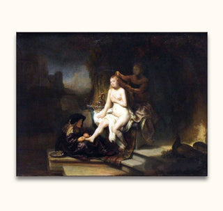 Handgeschilderd olieverfschilderij Batseba in Bad van Rembrandt van Rijn. Olieverfschilderij van hoge kwaliteit waarbij Batseba in haar bad door middel van klassieke schilderkunst is afgebeeld.