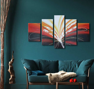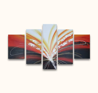Handgeschilderd 5-Luik Schilderij Relativity. Olieverfschilderij van hoge kwaliteit waarbij abstracte vormen door middel van moderne paletmes schilderkunst zijn afgebeeld.