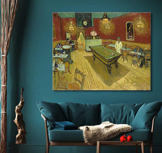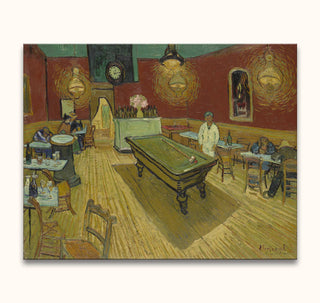 Handgeschilderd olieverfschilderij Het Nachtcafé van Vincent van Gogh. Olieverfschilderij van hoge kwaliteit waarbij het biljart huis, waar Vincent vaak at, door middel van impressionistische schilderkunst is afgebeeld.
